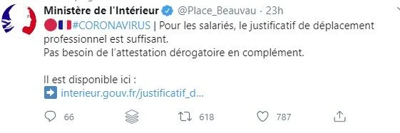 Cet extrait du Journal Officiel du 21 mars 2020 permet aux chauffeurs routiers d’étendre leurs durées de conduite jusqu’à 10 heures par jour, et même à 11 heures par jour, deux jours par semaine. Une durée de conduite étendue à 72 heures par semaine, jusqu’à 2 semaines consécutives. La liste des commerces autorisés à ouvrir peut être surprenante à bien des égards. Tous les autres commerces et établissements devront garder leurs portes closes au public jusqu’au 15 avril 2020. Le ministère de l’intérieur a par ailleurs confirmé que pour tous les déplacements professionnels, seule l’attestation de l’employeur était nécessaire, alors que nombre de Français sont verbalisés pour non présentation de leur attestation de déplacement dérogatoire personnelle. Un couac de plus...