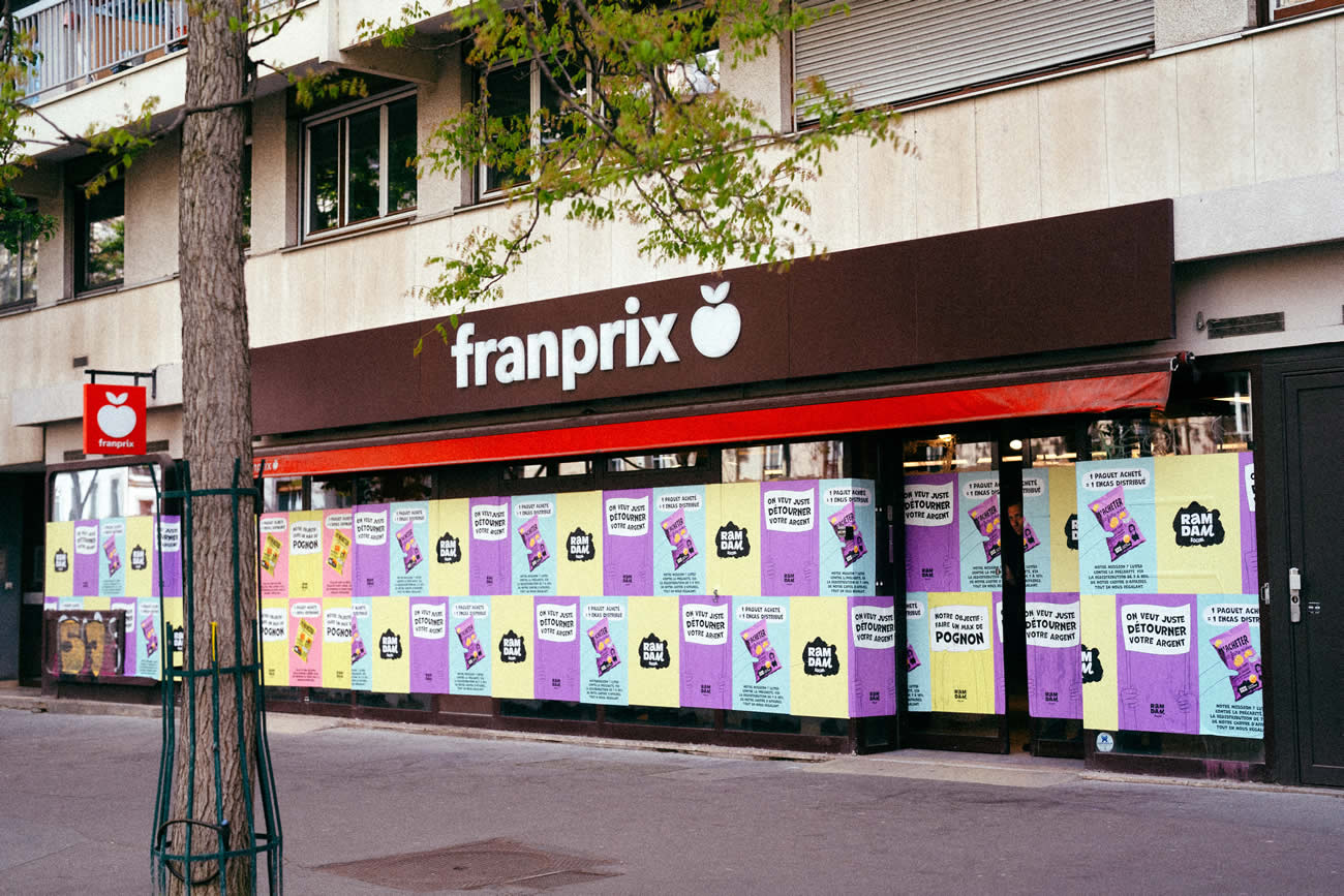 Première opération de ce genre sur les vitrines de Franprix, qui sera accompagnée d’un échantillonnage devant les magasins