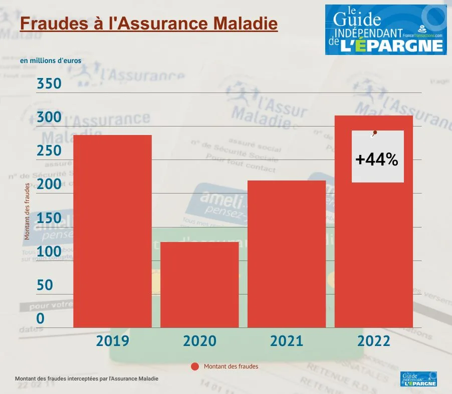 En 2022, l’Assurance Maladie a détecté et stoppé l’équivalent d’un montant de 315,8 millions d’euros de fraude au remboursement ou à la pratique de divers actes médicaux, à la fois par les professionnels de la médecine et les assurés. Ce montant est en hausse de 44 % par rapport à 2021, et surpasse le précédent record de 286,8 millions d’euros interceptés en 2019. En 2020, année marquée par la crise sanitaire, le montant de la fraude détectée était de 127,7 millions d’euros, en nette baisse, les contrôles ayant été réduits. L’objectif est d’atteindre un total de 500 millions d’euros de fraude stoppée par an en 2024.