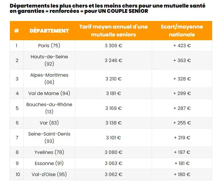 Les seniors, et plus particulièrement les retraités devraient payer en moyenne 2.883 euros de primes d’assurances santé en 2022 (au lieu de 2.871 euros en 2021), pour un couple, soit +0.4% de hausse. Les hausses sont toujours trop élevées, mais ce qui est le plus dommageable reste ce montant astronomique de 2.883 euros. Il doit exister moins cher, c’est évident ! D’autant plus que pour un couple, nombre de mutuelles santé proposent des réductions significatives, de l’ordre de 10% pour la seconde personne.