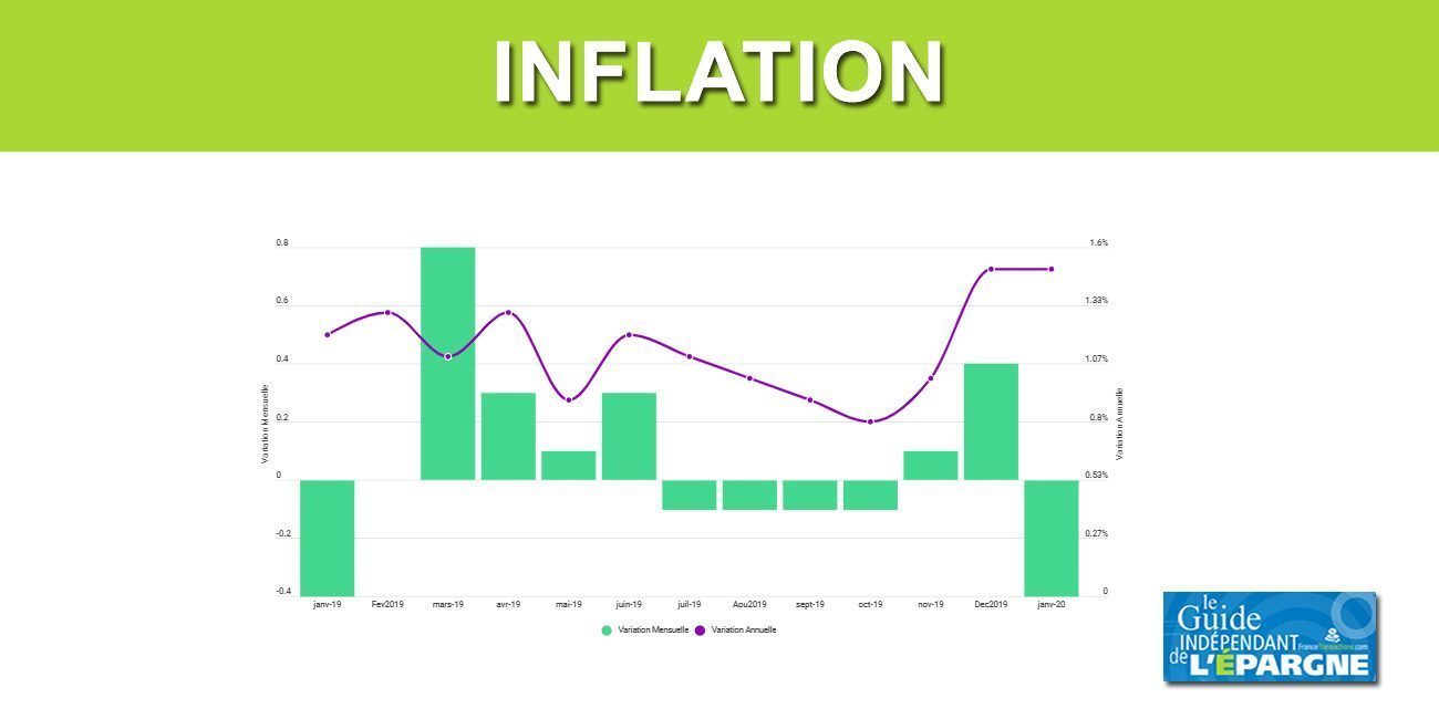 En janvier 2020, les prix à la consommation se replient de 0,4 % sur un mois et augmentent de 1,5 % sur un an selon la publication de l’INSEE de ce jour.