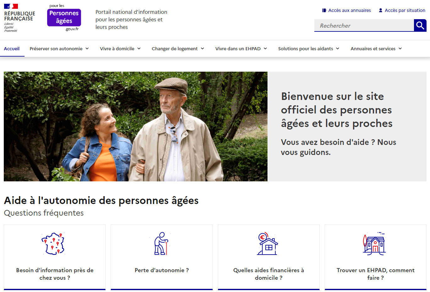Page d’accueil du portail officiel pour les personnes âgées © pour-les-personnes-agees.gouv.fr