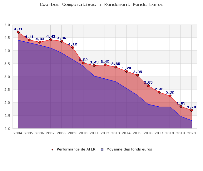 Le contrat d’assurance-vie AFER, assuré par AVIVA, n’est plus réellement la référence depuis quelques années. Néanmoins, compte-tenu du nombre important d’épargnants ayant placé leurs économies sur ce contrat, la publication du taux de rendement de son fonds euros est toujours très attendu.