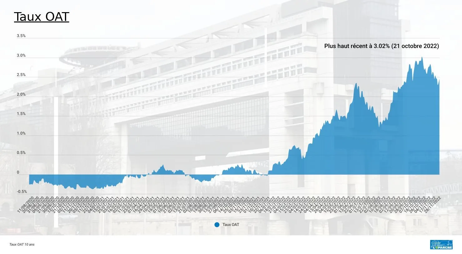 Les fonds en euros classiques portent leurs lignes obligataires jusqu’à leurs échéances. Ces obligations sont principalement celles émises par la France. Ces obligations d’Etat offre une garantie du capital, le défaut de remboursement de l’Etat Français étant considéré comme très peu probable. Les assureurs souscrivent ainsi pas moins 40% de la dette émise sous forme obligataire par la France, étant ainsi le premier acheteur de la dette du pays. Ainsi, c’est bien cette dette abyssale qui procure le rendement des fonds euros actuel. Or, justement, avec cette remontée des taux d’intérêts, le taux de la dette française, ces fameuses OAT sur 10 ans par exemple, affichent un taux supérieur à 2.5%. Avec la remontée des taux confirmée par la BCE, ce taux devrait dépasser facilement les 3% en 2023. Ce taux de rémunération, quasiment sans risque, pour un investisseur qui porte sa souscription jusqu’à maturité, soit 10 ans ,est attractif. Le meilleur des fonds euros ne servant pas un tel rendement.