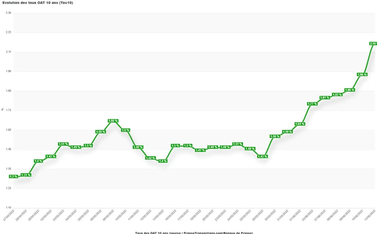 Taux OAT : suivre l’évolution des taux de l’OAT 10 ans permet d’avoir une tendance sur le future hausse ou baisse des taux fixes des crédits immobiliers.