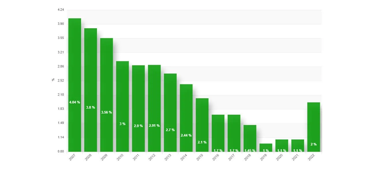 Sur les PER assurances individuels, le rendement du fonds euros est également de 2% au titre de l’année 2022. Le fonds euros bénéficie également de l’offre de bonus de rendement, allant jusqu’à 0.55% de rendement supplémentaire.