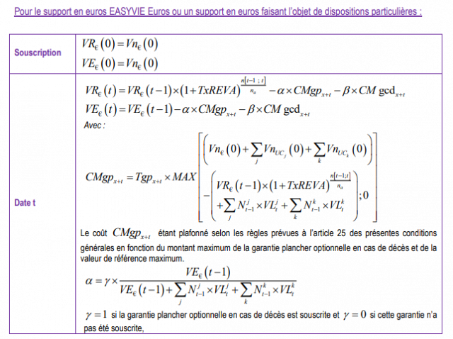 Pour un contrat qui se nomme Easy, et qui se veut simple, accessible et performant, une lecture commentée de cette chose aurait été bien vue. Je ne suis pas un mathématicien de grand talent, mais reste persuadé que ce type de formule doit laisser de marbre bon nom d’épargnants, auprès desquels l’on s’empresse de rabâcher que l’assurance-vie n’est pas un produit si complexe que cela. Easy.