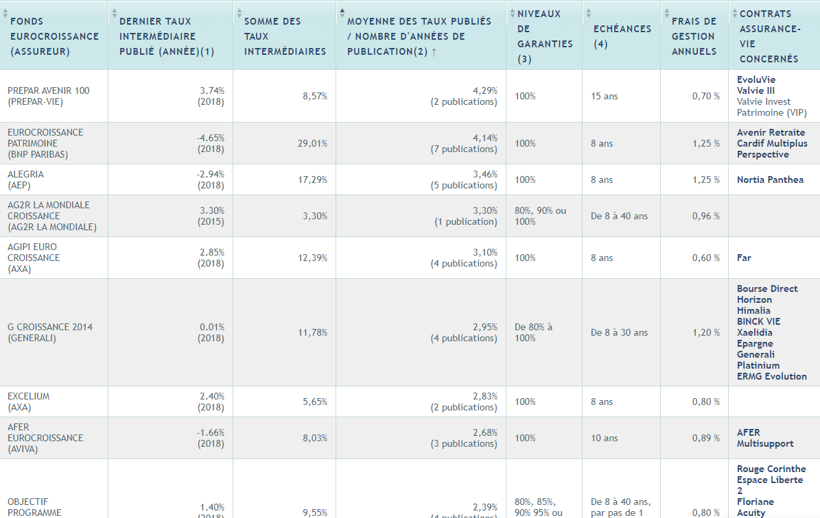 La quête de la simplicité. Les fonds EuroCroissance ne devront plus se décliner à l’infini en fonction de la proportion de capital garanti et de la durée de l’investissement. Ces tableaux de rendements potentiels en double niveaux ne seront donc plus utilisés. De même, les assureurs seront tenus de publiés des taux intermédiaires annuels, et ne pourront donc plus choisir des dates de référence arbitraires.