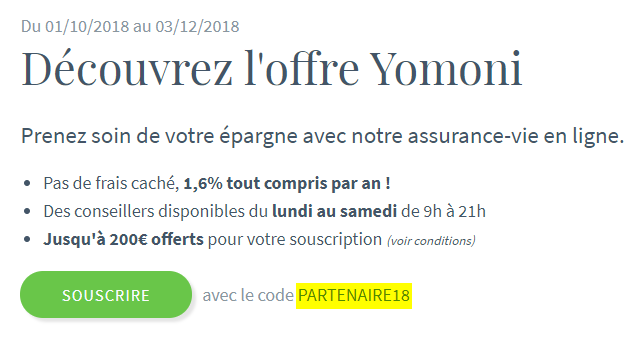 | ASSURANCE-VIE YOMONI VIE | Assurance vie Yomoni Vie : jusqu'à 12 mois d'équivalent de frais de gestion remboursés ! | EN SAVOIR + |