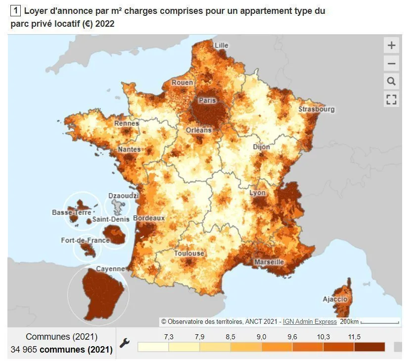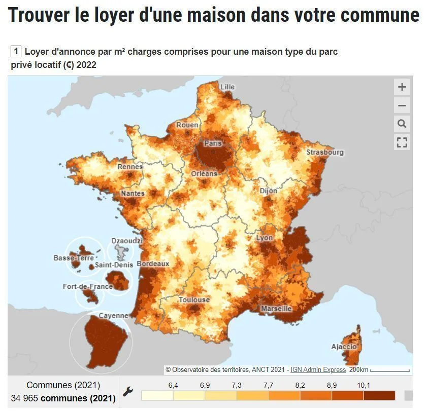 Immobilier locatif : carte interactive des loyers en France, tous les loyers sur votre commune