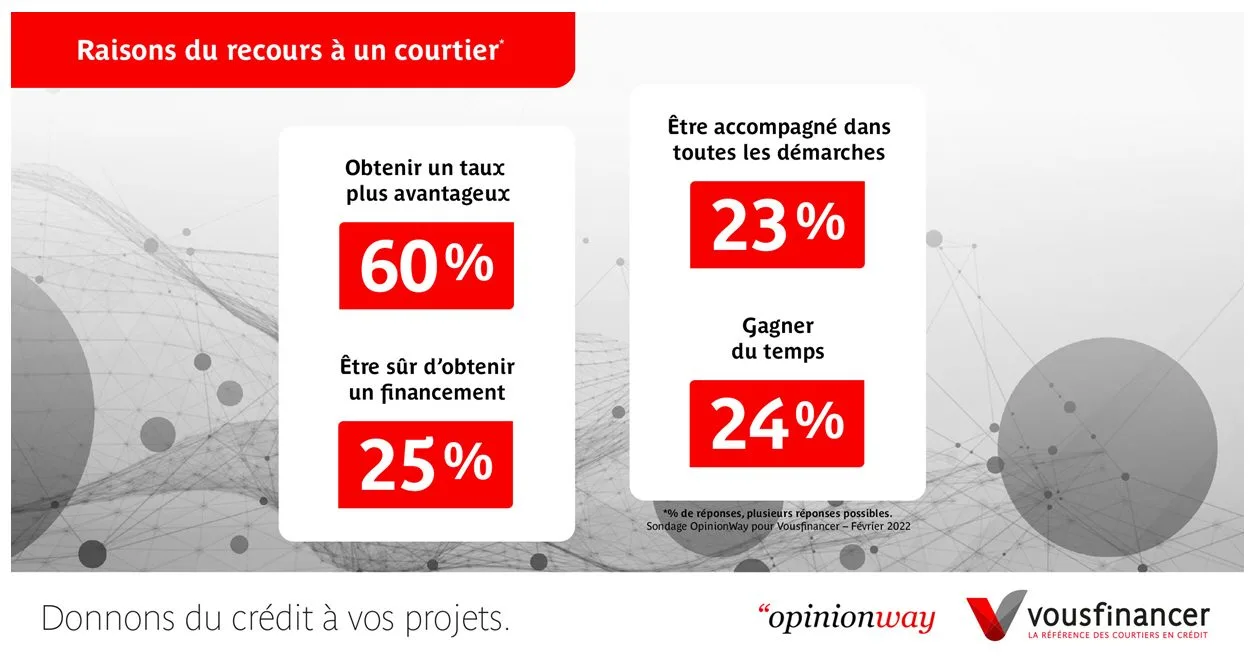 « 2020 a été une année exceptionnelle pour les courtiers, avec une forte hausse de notre part de marché en raison du contexte : sous l’effet combiné des recommandations du Haut conseil de stabilité financière fin 2019, et des confinements, notamment au printemps, qui avaient mis à l’arrêt le marché immobilier et l’octroi de crédit, mais aussi avec la hausse du chômage partiel, les Français, par peur de ne pas obtenir leur crédit, ont eu massivement recours aux courtiers… En 2021, on note que, même avec une légère détente des conditions d’octroi de crédit en 2021, cette tendance s’est maintenue, témoignant d’une pratique désormais ancrée dans le parcours d’achat immobilier, confirmée par le recours encore plus important des jeunes générations à un courtier » analyse Julie Bachet, directrice générale de Vousfinancer.