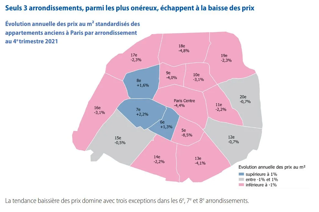 Immobilier : la baisse des prix à Paris s’amplifie au fil des mois, -1.75% sur les 3 premiers mois de 2022