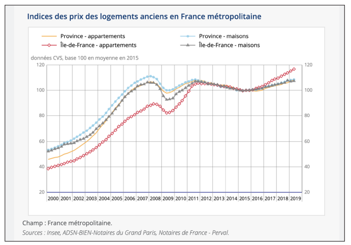 Outre ces éléments conjoncturels, le marché reste soutenu par des éléments structurels : le manque d’attractivité relative des autres placements financiers, le pouvoir d’achat relativement dynamique des ménages (en particulier en 2019) ainsi que la baisse du taux de chômage ces dernières années, une démographie favorable (progression du nombre de ménages), un modèle français de crédit à l’habitat assez prudent (taux fixes, faible taux de créances douteuses, …) ou encore le fait que l’immobilier soit considéré comme un placement peu risqué dans un contexte général d’aversion au risque.