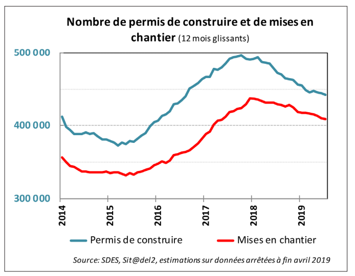 À la différence de l’ancien, le marché du neuf continue de s’essouffler, affecté notamment par la baisse de la construction de maisons. Les ventes de logements neufs plongent en France. Les permis de construire et les mises en chantier poursuivent sur leur tendance baissière enclenchée début 2018. Une tendance qui peut s’expliquer par le recentrage sur les zones tendues de certaines mesures de soutien à la demande (PTZ, zonage sur le Pinel) et par l’approche des élections municipales de 2020 (les maires sont traditionnellement plus frileux pour accorder des permis de construire en période pré-électorale).