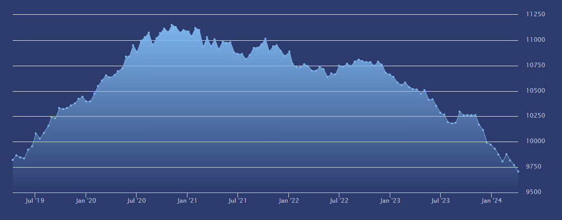 La baisse mesurée le 5 avril 2024 est avoisine ainsi les 13 % depuis moins de 4 ans. Mesuré le 5 avril dernier, le prix moyen du mètre carré parisien, intra-muros, est de 9.707 €. Ce niveau était celui d’avant crise COVID, en 2019. La baisse, en réalité a été bien plus grande que ces seuls 12.94%. En effet, l’inflation a été importante durant ces dernières années.