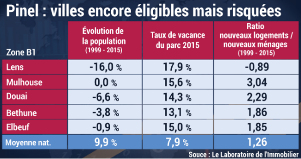 Ainsi, comme le publie BFM Business et le Laboratoire de l’Immobilier, ces villes sont à éviter : Lens, Douai et Béthune, trois villes des Hauts-de-France, dont certaines, preuve d’un manque certain d’attractivité, se battent pour garder leurs dessertes TGV. Mulhouse dans le Grand-Est et Elbeuf en Normandie complètent la liste noire des villes à éviter pour investir en Pinel. Deux villes qui elles aussi affichent un taux de vacance extrêmement élevé.