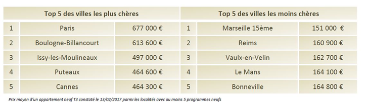 Précisément, parmi plus de 150 villes les plus dynamiques en matière de construction neuve, c’est-à-dire avec au moins cinq programmes neufs en cours de commercialisation, le prix d’un appartement de trois-pièces est en moyenne de 249 869 €, contre 247 495 €, il y a 6 mois en arrière. Cela représente une hausse moyenne de 2 374 € pour un T3, soit + 0.95 % depuis août 2016. Parmi ces localités passées au crible, Trouver-unlogement-neuf.com observe 92 hausses pour 58 baisses.
