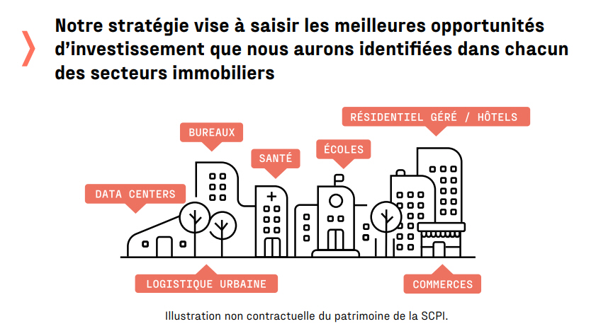 Evidemment, la SCPI ne va pas investir dans le secteur des bureaux pour le moment. Ce secteur est sans conteste le plus durement impacté par la remontée des taux, tout comme par le changement des modes de vie. Toutefois le gestionnaire se laisse l’opportunité de revenir sur ce marché, une fois la purge terminée. C’est tout l’avantage de lancer un produit financier une fois la crise initiée, l’on sait exactement dans quelle direction aller.