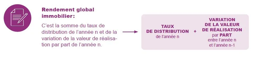 Ce nouvel indicateur de rendement est optionnel, les sociétés de gestion qui souhaitent mentionner une performance globale annuelle de la SCPI, doivent utiliser l’indicateur rendement global immobilier. Cet indicateur ne devrait pas être un critère de comparaison efficient puisqu’il se se base sur la variation de la valeur de réalisation. Or cette valeur est issue d’une estimation effectuée au minimum annuellement et non pas d’une valeur réelle d’un actif. Il ne s’agit donc pas d’un rendement réel, mais d’un rendement potentiel. Le rendement global immobilier est la somme du taux de distribution de l’année N et de la variation de la valeur de réalisation par part de entre l’année N et N-1.