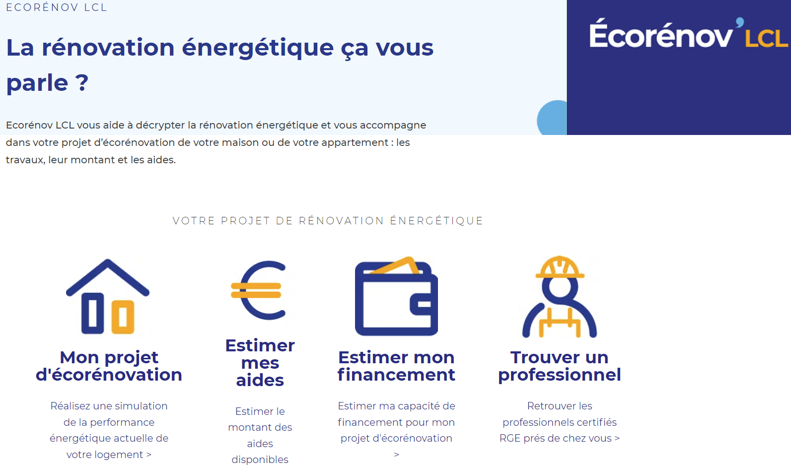 Face aux importants défis environnementaux et sociétaux et pour que la rénovation et la sobriété énergétique des logements soient plus facilement accessibles, LCL lance, en cette rentrée 2024, son site « Ecorénov’LCL ». Cette plateforme, conçue par Crédit Agricole Transitions & Energies, propose une gamme complète de services pratiques pour les clients et prospects de la banque tout au long des étapes indispensables pour améliorer la performance énergétique de leurs logements.