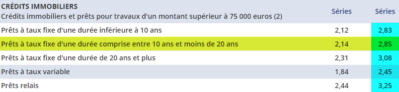 Taux fixes moyens de marché des crédits immobiliers - Données actualisées au 08/12/2025