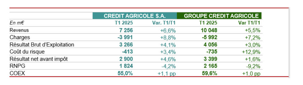 Crédit Agricole SA a affiché des résultats solides au T1 2025, témoignant d’une bonne résilience de la banque face à un environnement économique complexe.