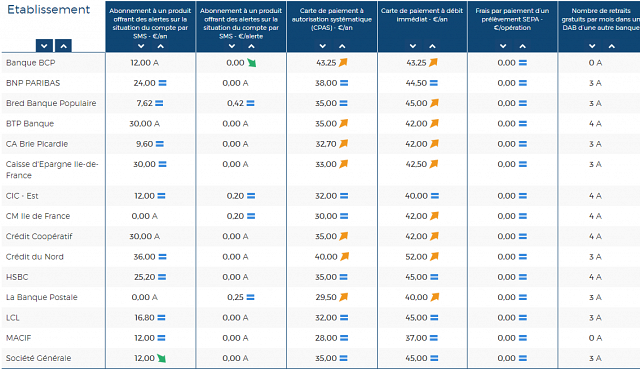 Le comparateur officiel des frais bancaires permet de comparer simultanément les frais bancaires de 6 services de son choix de près de 150 banques, soit 98% du marché, pour son département de (...)