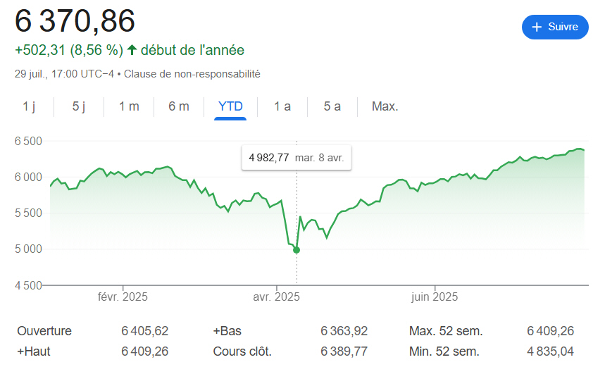 Bourse : l’indice S&P500 attendu en baisse dès septembre 2025 ?