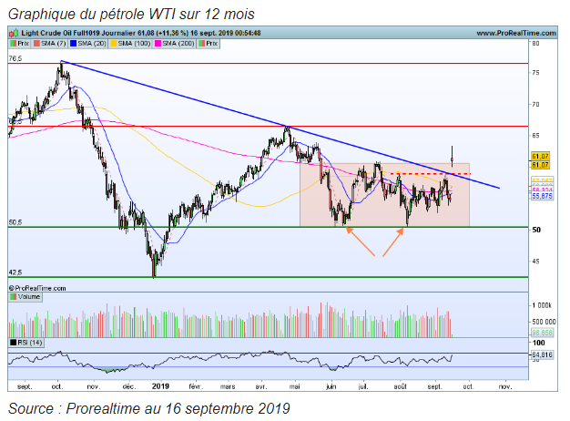 L’attaque des infrastructures pétrolières en Arabie Saoudite avec des drones ce week-end a engendré un décalage historique des prix du pétrole. Dans les premiers échanges le pétrole WTI a gagné jusqu’à 15% atteignant ainsi les 63 dollars avant de consolider. Nicolas Chéron, Responsable de la Recherche Marchés pour Binck.fr, livre ses analyses suite à cet événement.
