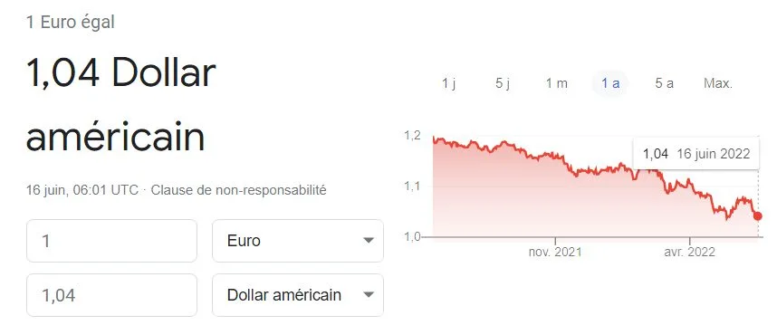 Cela faisait 20 ans que le dollar n’a pas été aussi fort face à l’euro. La normalisation de la politique monétaire de la BCE, doux euphémisme pour le retour sur ses pieds du monde financier avec la fin des taux négatifs, est largement en retard par rapport à celle de la FED, l’Euro plonge logiquement face au Dollar. La parité parfaite pourrait être atteinte.