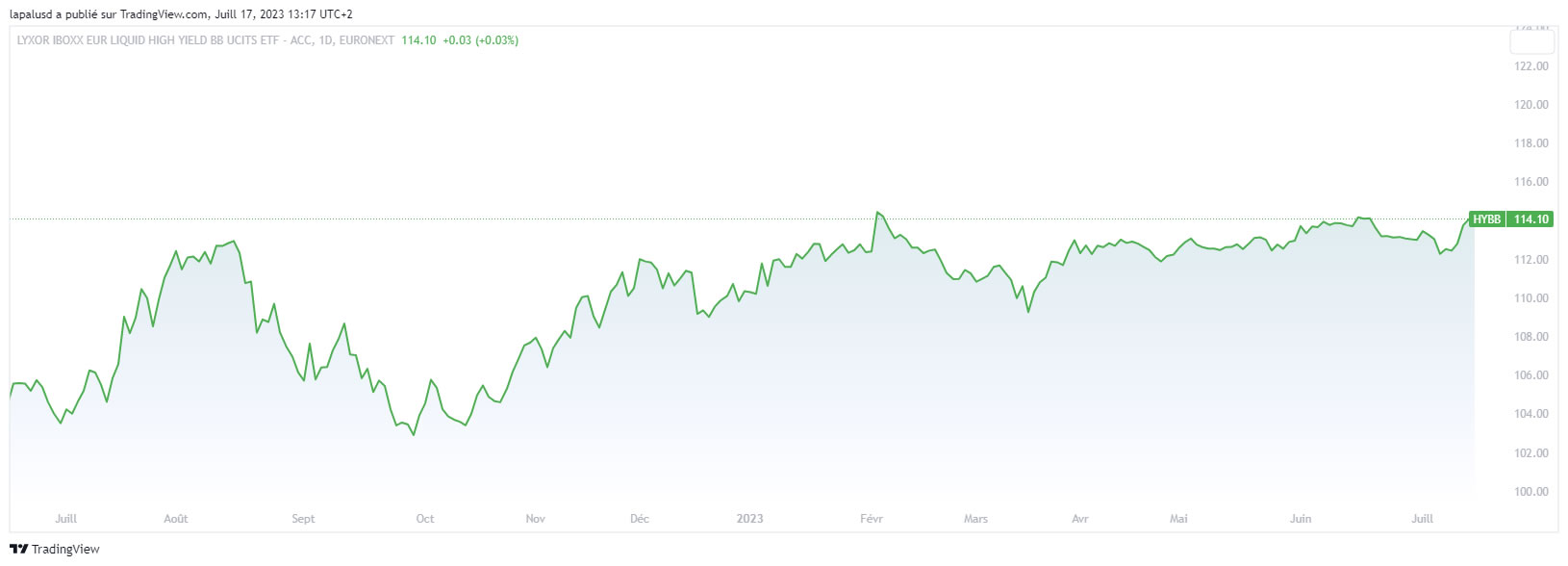 L’indice IBOXXMJA est utilisé pour mesurer la performance de l’univers européen des obligations à haut rendement. Les éléments détaillés précédemment représentent l’analyse du mois par l’équipe obligataire, au 30/06/2023, et ne constituent pas une promesse des événements futurs.