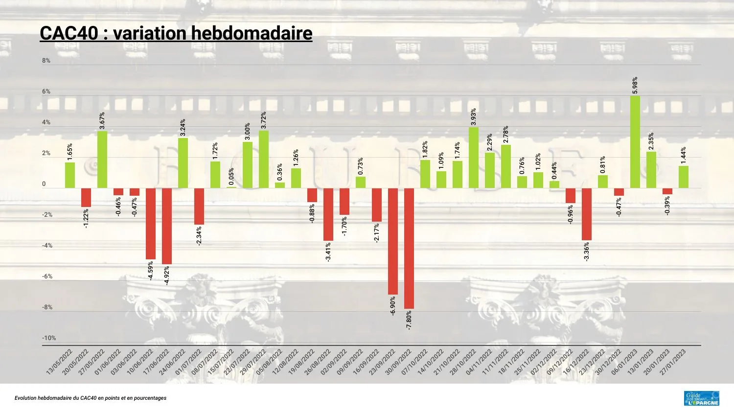 Cette semaine, ce sont surtout les résultats admirables de LVMH qui ont fait saliver les journalistes financiers. La CAC40 signe une hausse confortable de 1.44% sur la semaine.