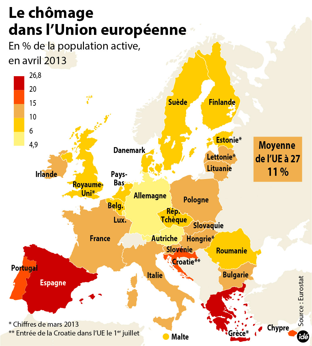 A l’heure actuelle, 26 millions de personnes sont au chômage en Europe, dont 5,6 millions ont moins de 25 ans. En Espagne et en Grèce, le taux de chômage des jeunes dépasse les 50 % depuis plusieurs mois, une situation critique que l’Europe entend résoudre.