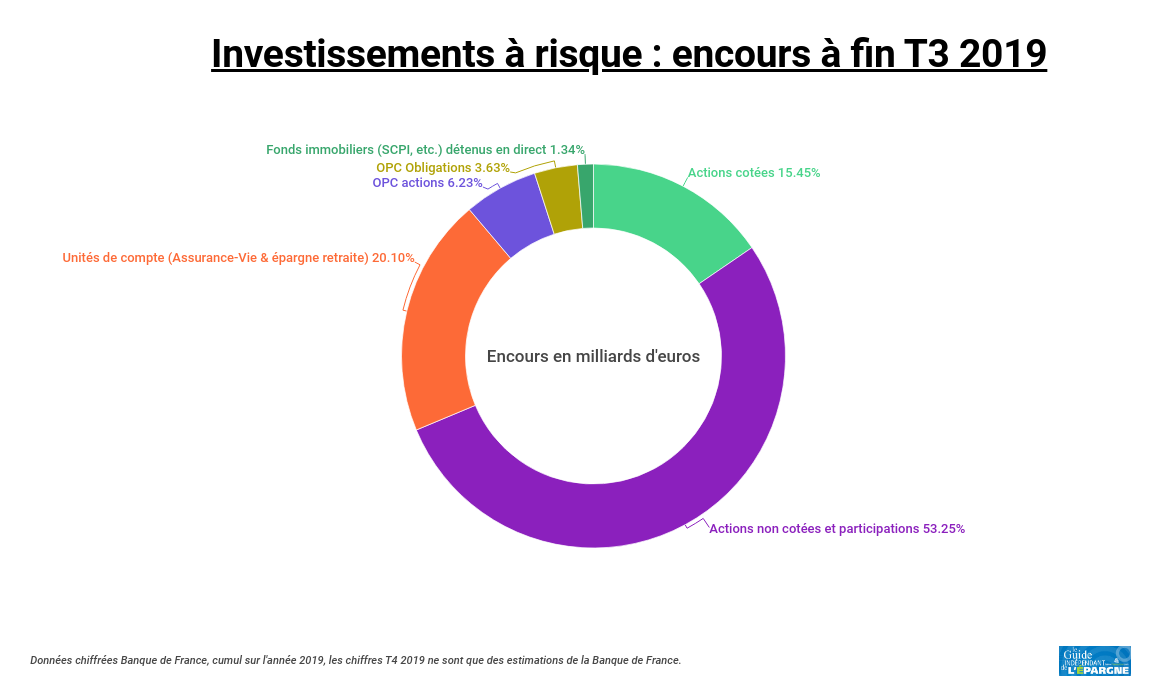 Au 3e trimestre 2019, les investissements en actions, cotées et non cotées dépassaient les 10 milliards d’euros. Du côté de l’assurance-vie, pour l’année 2019 toute entière, ce sont 4,9 milliards d’euros placés en unités de compte. Les OPC totalisaient à la fin du 3e trimestre 2019 plus de 5 milliards d’euros de collecte nette.