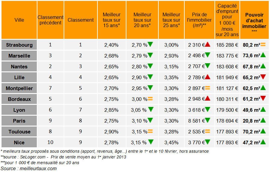 Crédit immobilier : meilleurtaux.com communique le classement des taux les plus compétitifs dans les dix plus grandes villes de France. Strasbourg est encore la ville en tête du classement en février ...