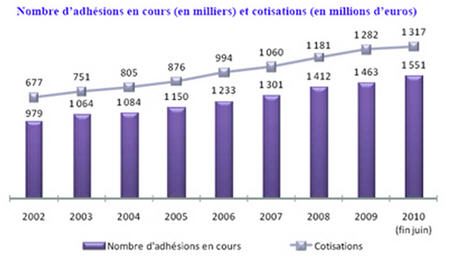 A la fin du mois de juin 2010, 1,9 million de personnes sont couvertes par un contrat dépendance en garantie principale. Les cotisations collectées au cours des douze derniers mois sont en progression de 2 % en un an pour représenter un montant global de 414,1 millions d’€.