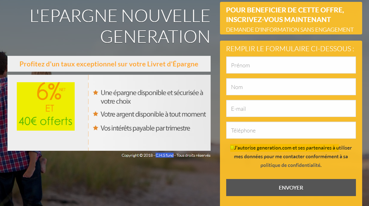 Plusieurs lecteurs nous ont questionné à propos d’une offre reçue par courriel (non sollicitée, reçue en spam). La proposition est celle d’un livret épargne proposant un taux de 6% NET (!), assorti d’une prime de 40€ aux 1.500 premiers épargnants demandant d’en savoir plus. Sans même connaître le détail de l’offre qui se cache derrière, et nous ne souhaitons surtout pas la connaître, nous n’avons qu’une réponse à formuler à nos lecteurs... Fuyez !