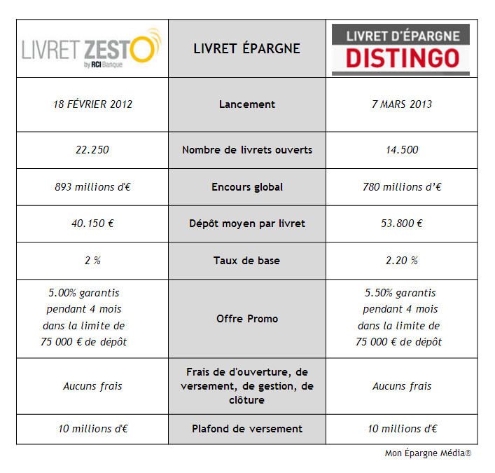 22.250 livrets ZESTO ouverts chez RCI Banque contre 14.500 livrets DISTINGO pour PSA Banque, mais seulement 893 millions d’€ déposés auprès de la banque au losange contre 780 millions d’€ auprès de celle du Lion.