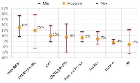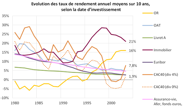 Premier constat, depuis la seconde moitié des années 1990, l’investissement immobilier est le plus rentable des sept investissements étudiés.