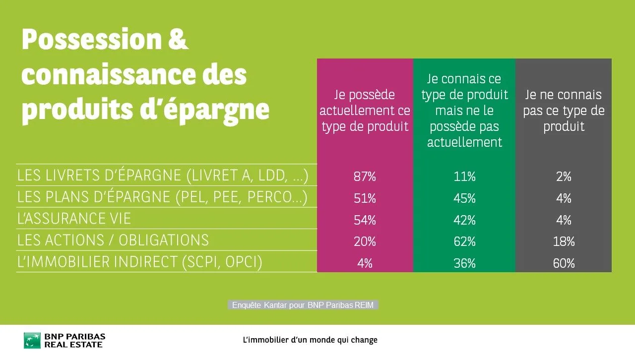 D’autres produits d’épargne semblent plus confidentiels : 20% des Français possèdent des actions / obligations et 4% seulement ont déjà investi dans l’immobilier indirect, aussi appelé « pierre-papier » (SCPI ou OCPI).