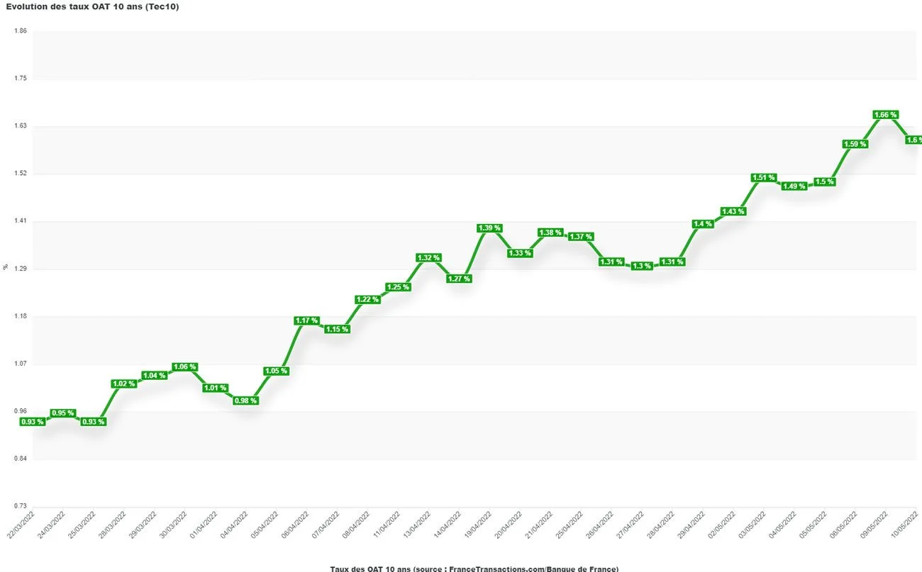 Taux OAT : suivre l’évolution des taux de l’OAT 10 ans permet d’avoir une tendance sur le future hausse ou baisse des taux fixes des crédits immobiliers.