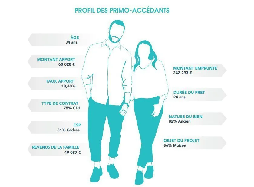 Rappel du portrait-robot de l’emprunteur primo-accédant au 2e semestre 2022 : 34 ans, en CDI (75% des clients), achète dans l’ancien (85 %) et emprunte environ 242 293 € sur 24 ans (données CAFPI).