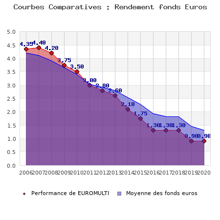 Rendement 2020 minimum (hors éventuel bonus), brut des prélèvements sociaux et fiscaux (tel que publié par l'assureur)