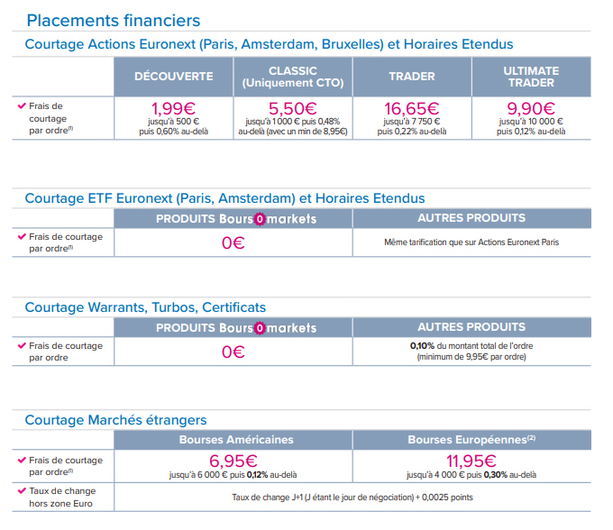 Offre Bourse Sicav : Decouverte, à partir de 1.99 €uros TTC par ordre Offre Bourse Sicav : Découverte PEA Gestion Libre, à partir de 1.99 €uros TTC par ordre Offre Bourse Sicav : Ultimate Trader, à partir de 9.90 €uros TTC par ordre Offre Bourse Sicav : Trader France, à partir de 16.65 €uros TTC par ordre