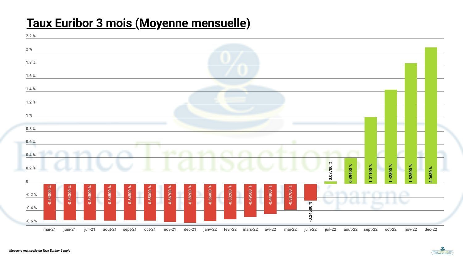 Taux Euribor Moyen Mensuel : Taux court-terme servant notamment de référence aux crédits immobiliers, à la valorisation des intérêts en cas de retard de paiement... (...)