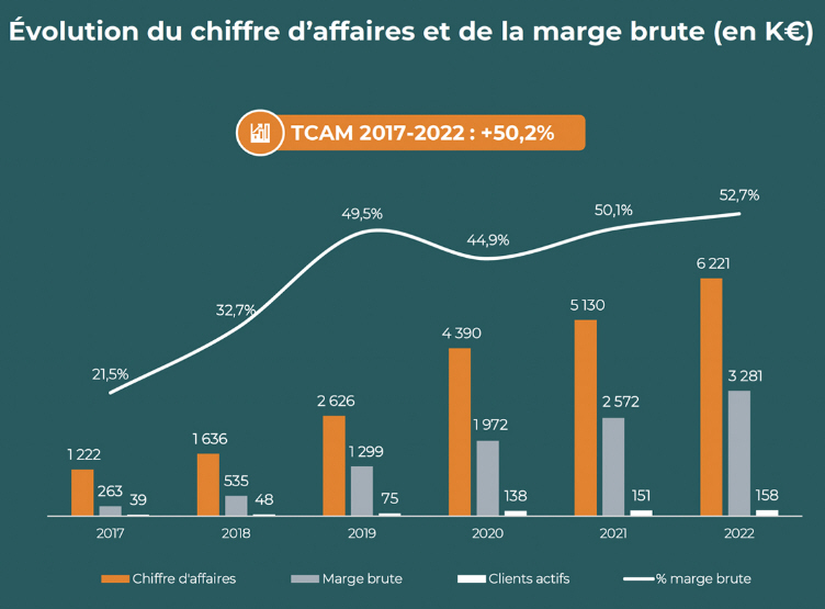 Vinpai indique ainsi avoir réalisé une croissance annuelle moyenne de 50,2% entre 2017 et 2022. Le chiffre d’affaires a dépassé les 6 millions d’euros de l’an dernier, contre 1,22 million d’euros cinq années plus tôt. Pour son exercice 2023, la société affiche d’ores et déjà un chiffre d’affaires de 4,1 millions d’euros au 30 juin et un carnet de commandes validées et à livrer de 6,5 millions d’euros. Toutefois, la société reste déficitaire. Elle a affiché une perte nette de 1,49 million d’euros en 2022, après 1,61 million en 2021.