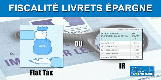 Les intérêts des livrets épargne n’appartenant pas à la catégorie de l’épargne réglementée sont soumis aux prélèvements sociaux ainsi qu’à la fiscalité. Ainsi, depuis 2018, par défaut, tous les intérêts des livrets épargne fiscalisés, coupons des obligations, produits des comptes à terme, et autres intérêts de produits de placements à taux fixe, sont soumis à la Flat Tax (prélèvement forfaitaire unique). Il est toujours possible d’opter pour le barème progressif (IR) pour les épargnants non imposables sur le revenu ou souhaitant que leurs intérêts perçus soient soumis au barème de l’impôt sur le revenu. Mais attention, cette option est applicable pour l’ensemble des produits des placements.