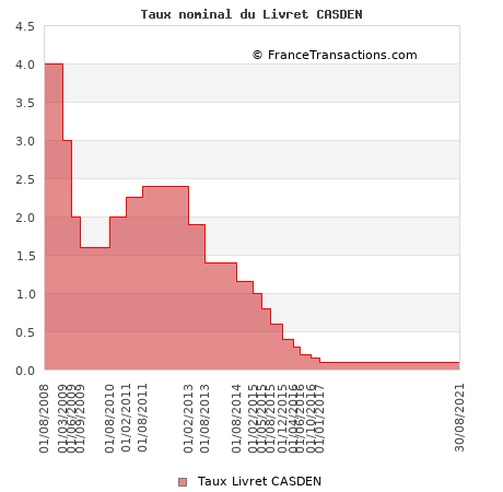 Le taux du compte sur livret CASDEN est 0.10% brut à partir du 1er janvier 2017.