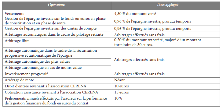 | Frais sur rentes | 3,00 % |