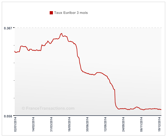 Evolution du taux Euribor depuis le début d’année 2014. Courbe, réception des cotations par email.